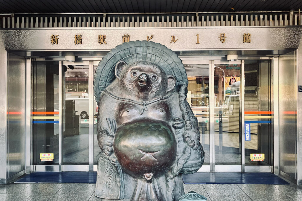 その正面玄関前には、狸の銅像が鎮座している。
