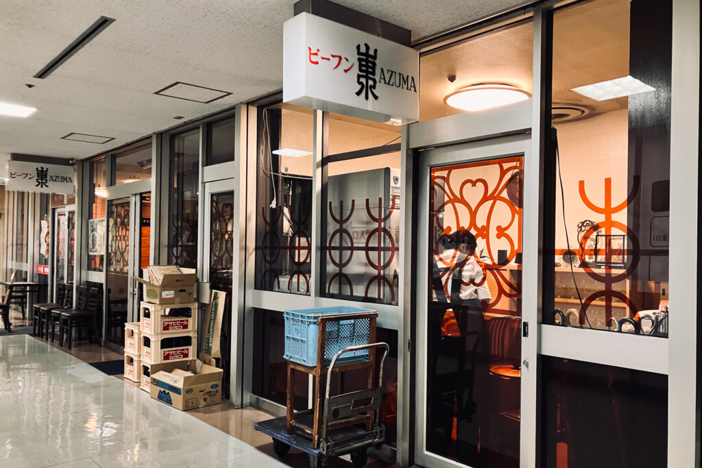 話をビーフン東に戻そう。新橋駅前ビル1号館へ入り、激細エスカレーターで2階へ。