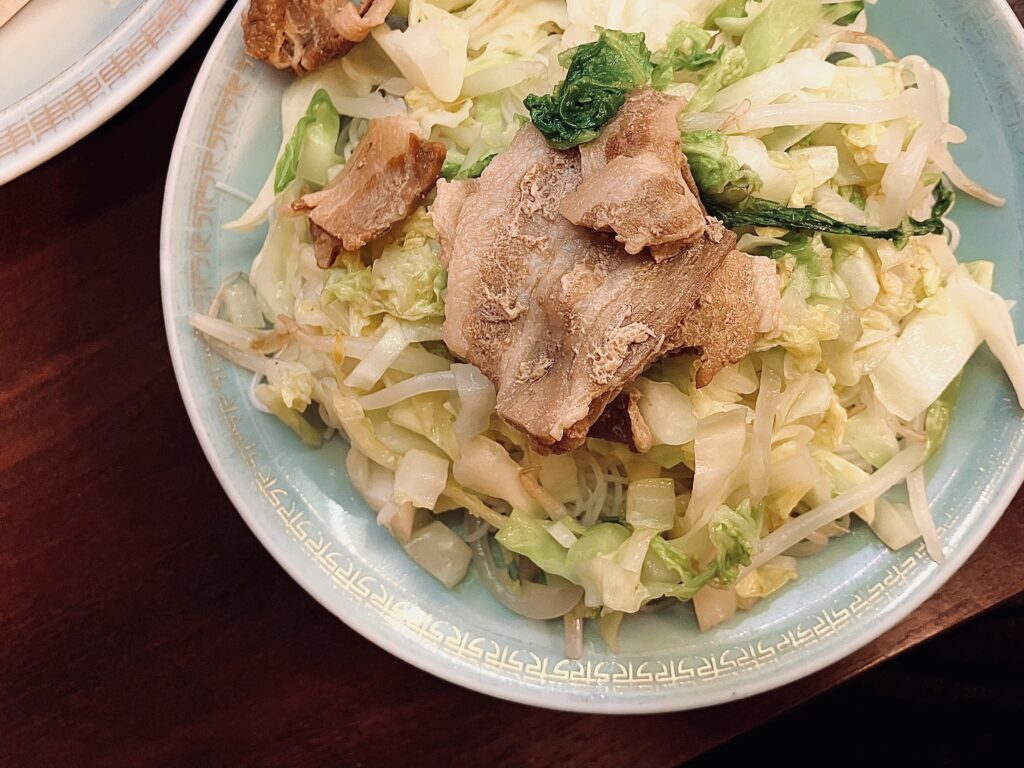 旨い!ビーフンはあっさりとした味付けで、ライスヌードルらしい甘みがある。豚肉は柔らかくジューシーで、合間に食べることで味わいの変化を楽しめる。